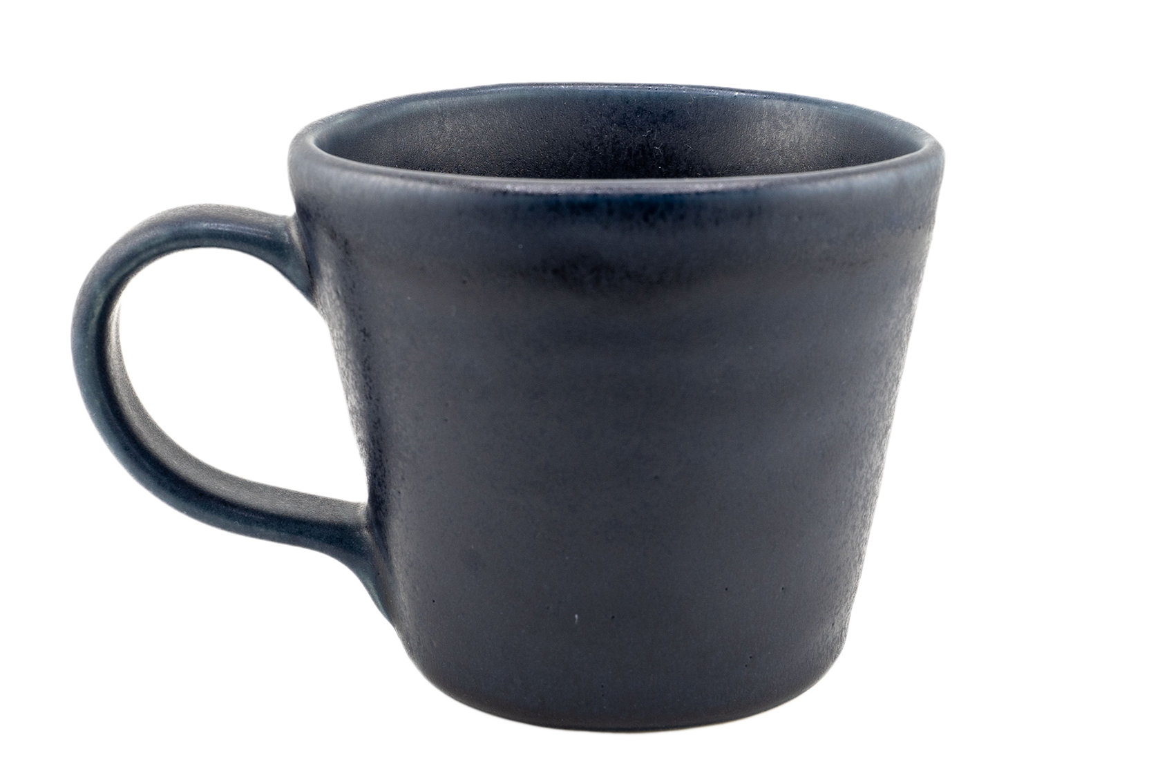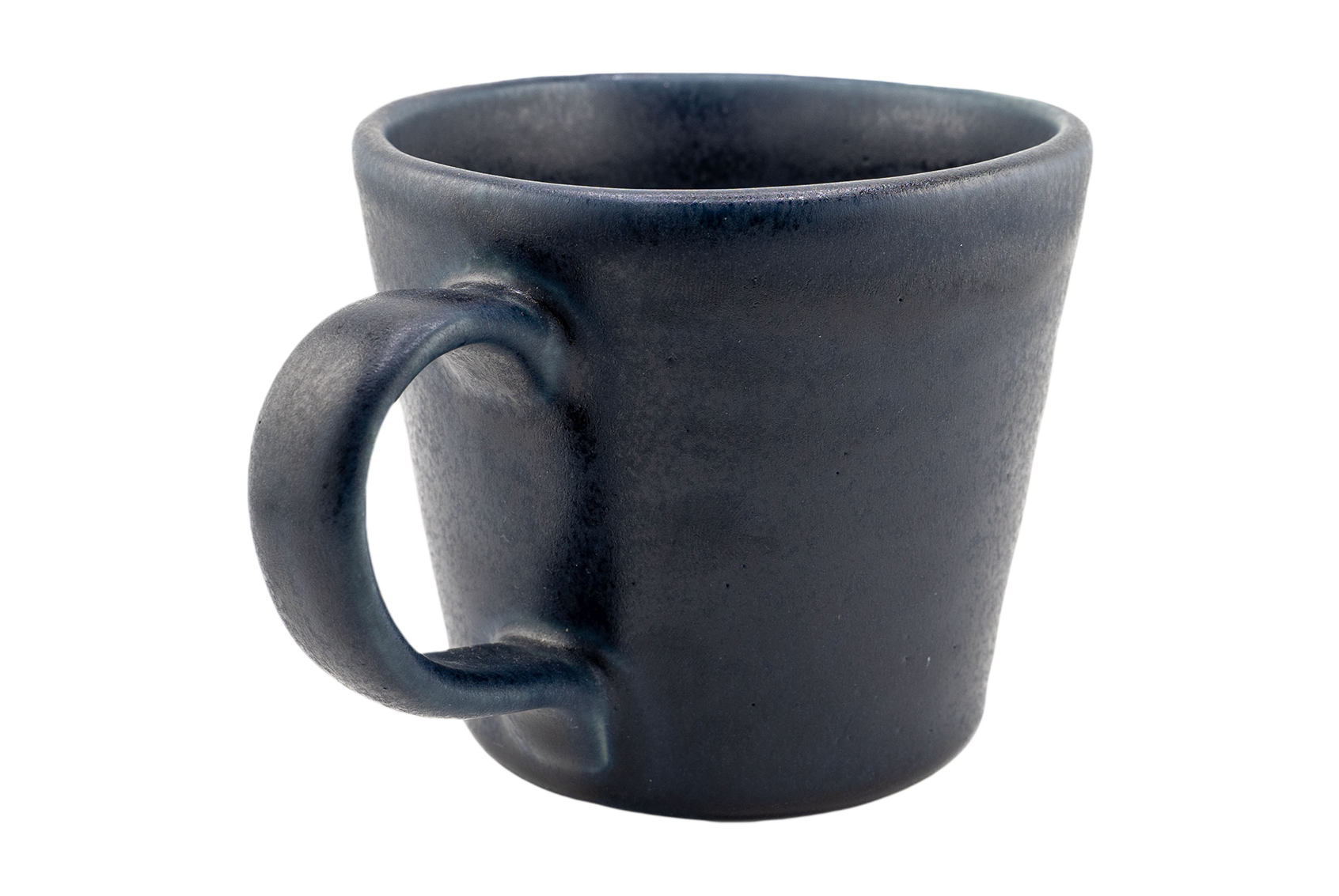 Klasikinės formos puodelis su rankenėle, glazūruotas tamsiai mėlyna spalva su šiek tiek matinio paviršiaus efektu. Tinka kavai, kakavai ar arbatai – jaukiai vienumoje ar su svečiu.